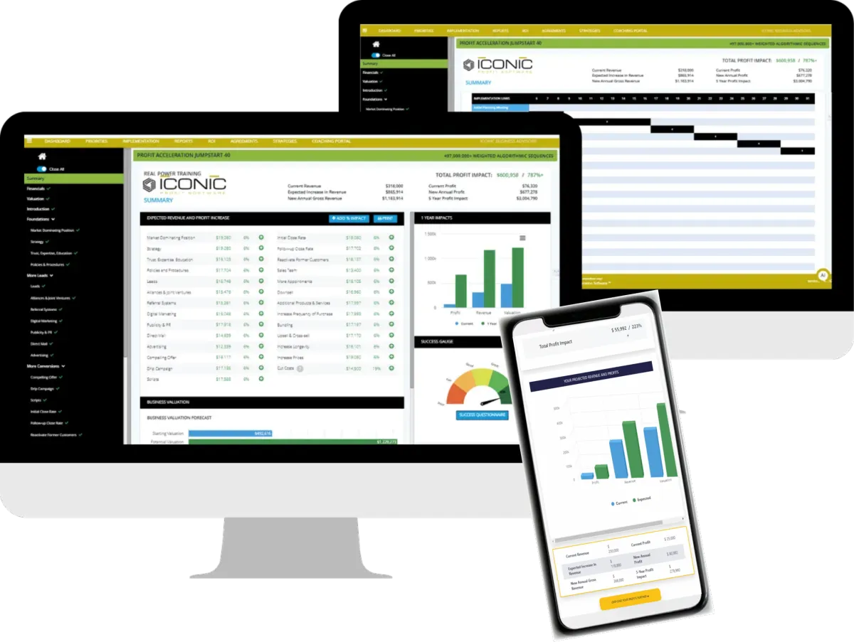 The Iconic Profit Simulator — along with Group Coaching, Speed Session Coaching, the Iconic Business Academy, and more — is included inside our business consulting software.